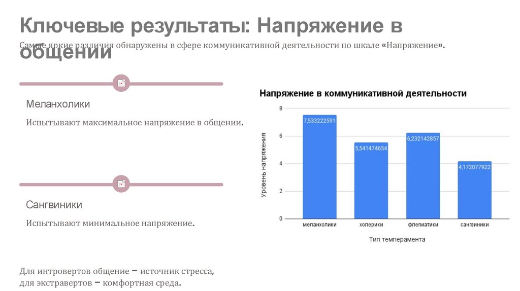 Ключевые результаты: Напряжение вСамые яркие различия обнаружены в сфере коммуникативной деятельности по шкале «Напряжение».