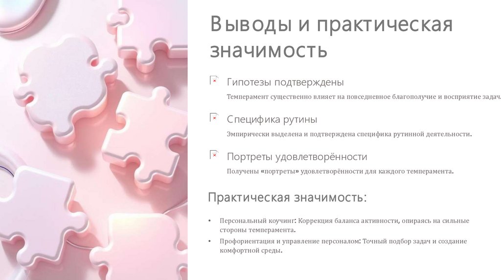 Получены «портреты» удовлетворённости для каждого темперамента.