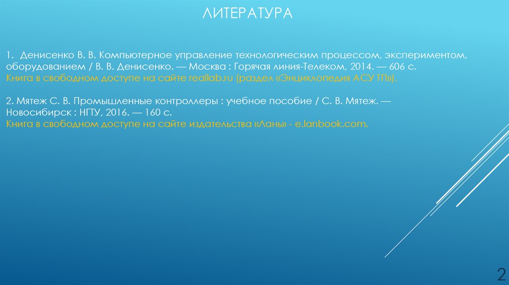 2. Мятеж С. В. Промышленные контроллеры : учебное пособие / С. В. Мятеж. —
