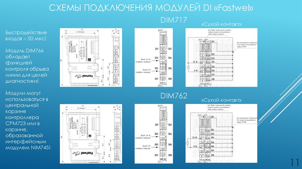 СХЕМЫ ПОДКЛЮЧЕНИЯ МОДУЛЕЙ DI «Fastwel»DIM717