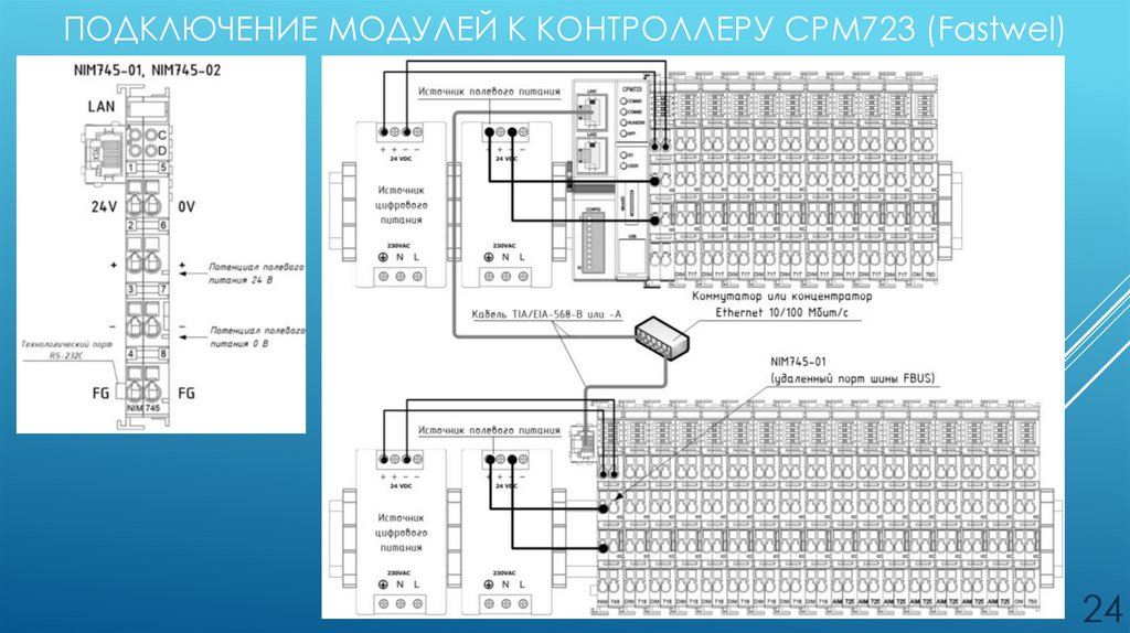 ПОДКЛЮЧЕНИЕ МОДУЛЕЙ К КОНТРОЛЛЕРУ CPM723 (Fastwel)24