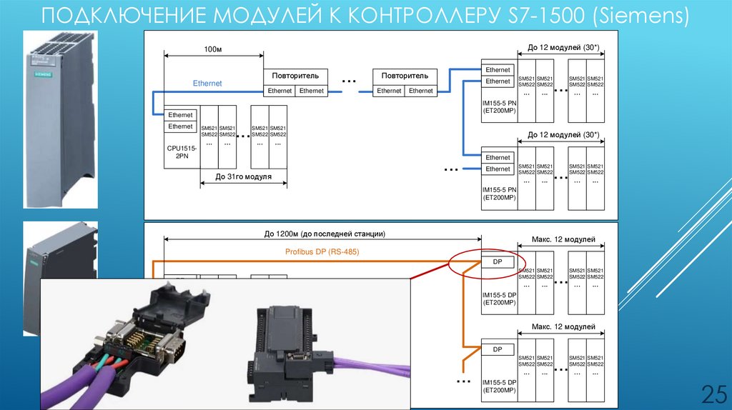 ПОДКЛЮЧЕНИЕ МОДУЛЕЙ К КОНТРОЛЛЕРУ S7-1500 (Siemens)До 12 модулей (30*)