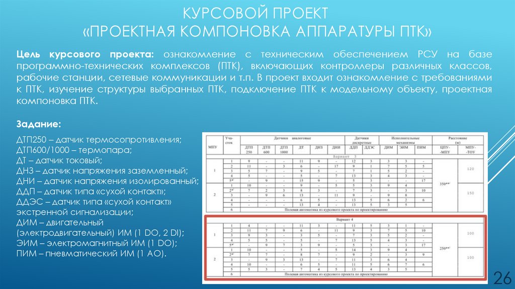 КУРСОВОЙ ПРОЕКТ«ПРОЕКТНАЯ КОМПОНОВКА АППАРАТУРЫ ПТК»
