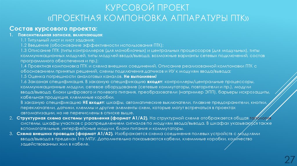 1.6 Заказная спецификация. В заказную спецификацию входят: контроллеры/центральные процессоры,