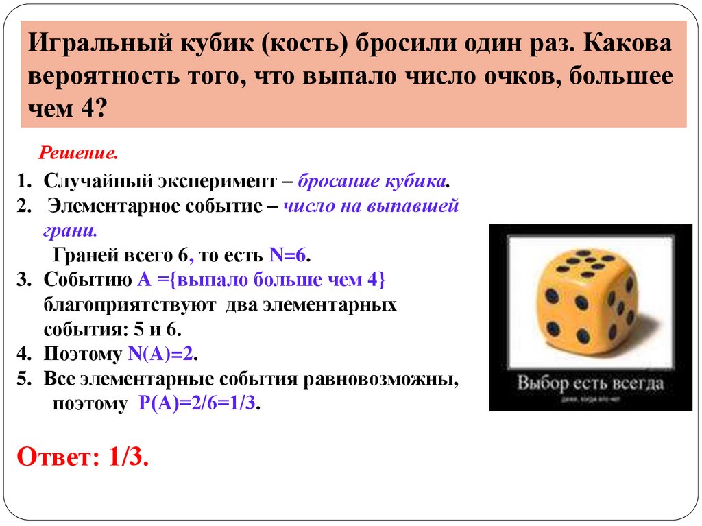 ПРИМЕР. Бросаем шестигранный игральный кубик.