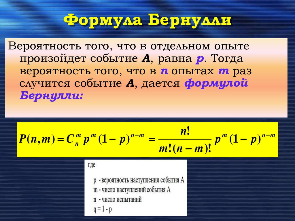 Формула БернуллиЕсли производится некоторое количество испытаний,