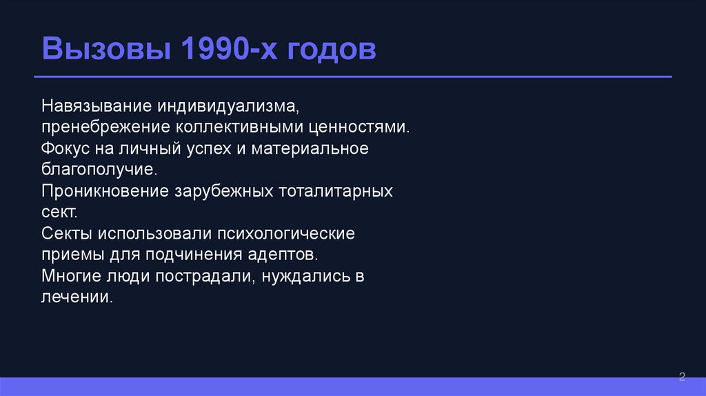 Вызовы 1990-х годовНавязывание индивидуализма,
