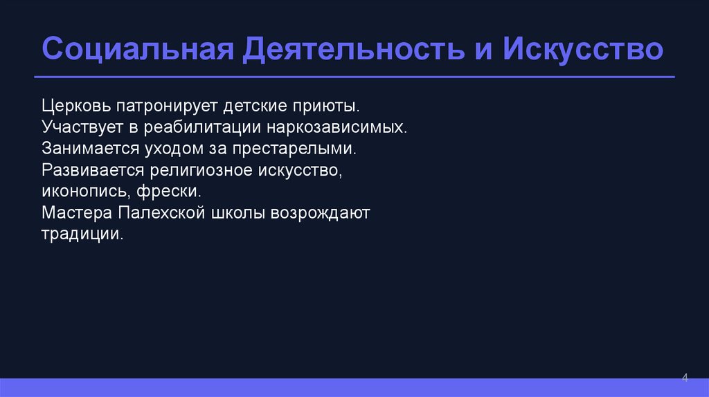 Социальная Деятельность и ИскусствоЦерковь патронирует детские приюты.