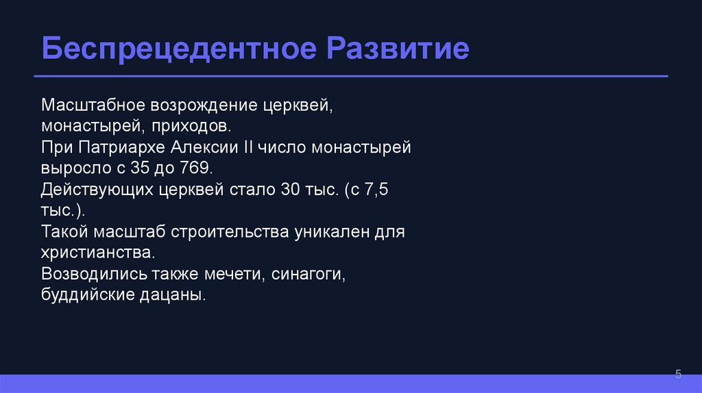 Беспрецедентное РазвитиеМасштабное возрождение церквей,