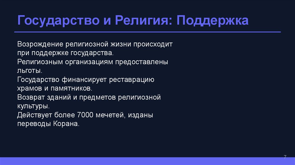 Государство и Религия: ПоддержкаВозрождение религиозной жизни происходит