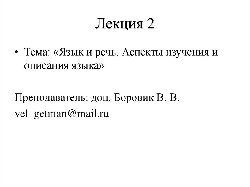 • Тема: «Язык и речь. Аспекты изучения иописания языка»