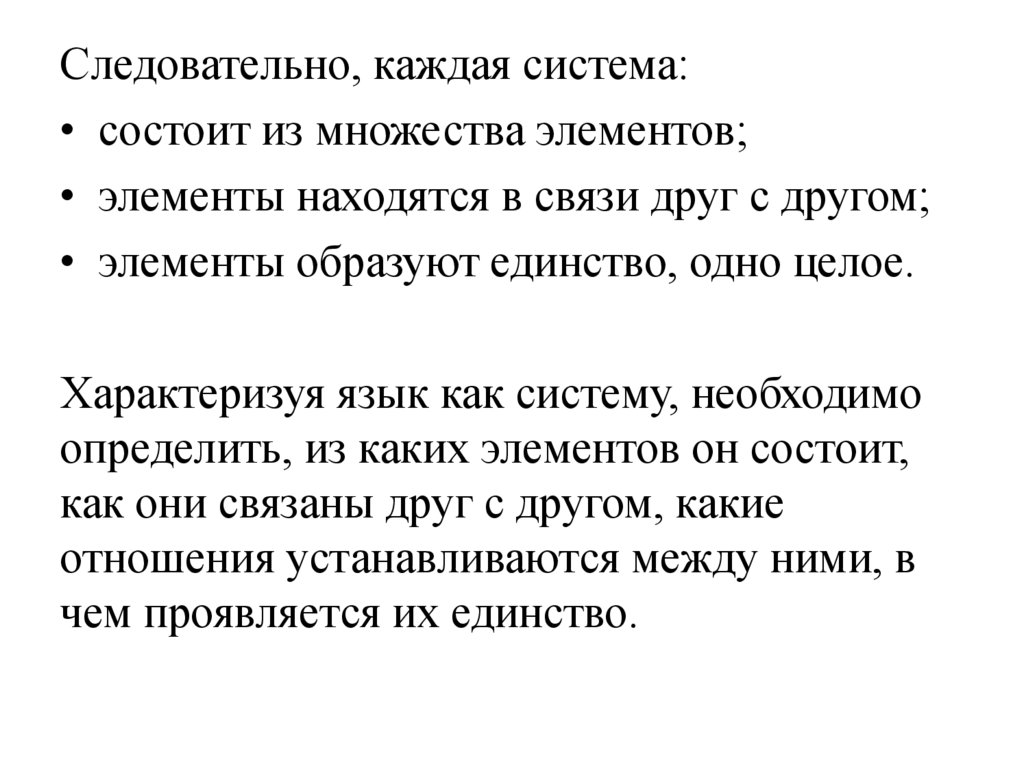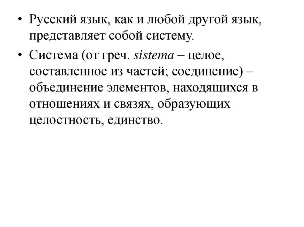 • Русский язык, как и любой другой язык,представляет собой систему.