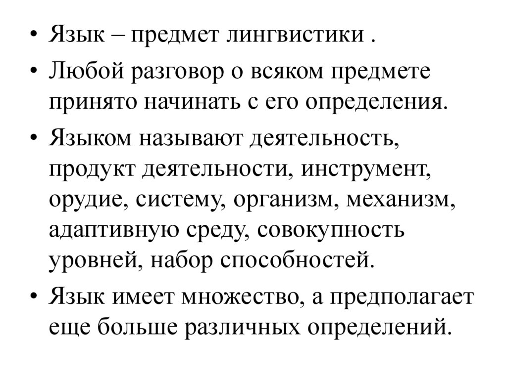 • Язык – предмет лингвистики .• Любой разговор о всяком предмете