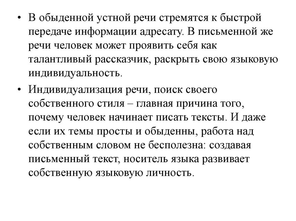 • Создание письменного текста требуетзначительно больших усилий, чем создание