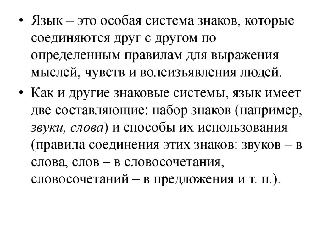 • Язык – это особая система знаков, которыесоединяются друг с другом по
