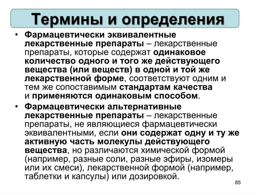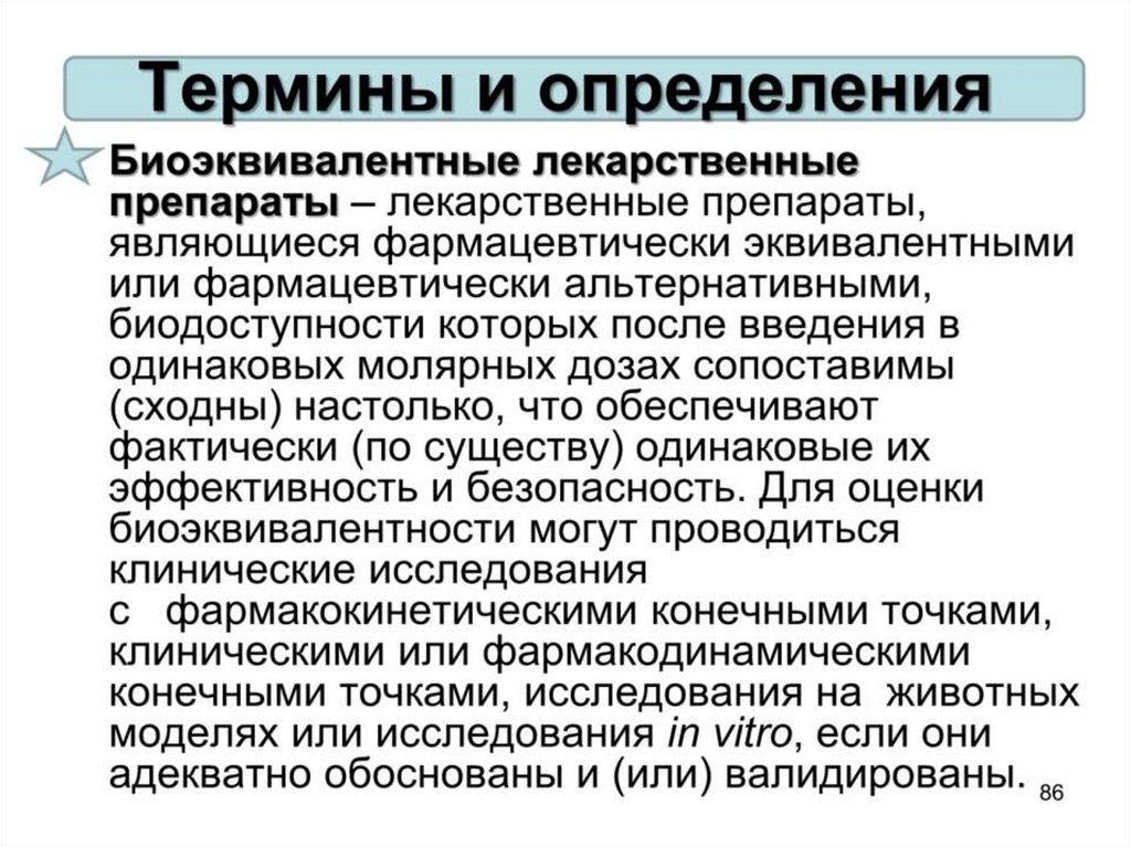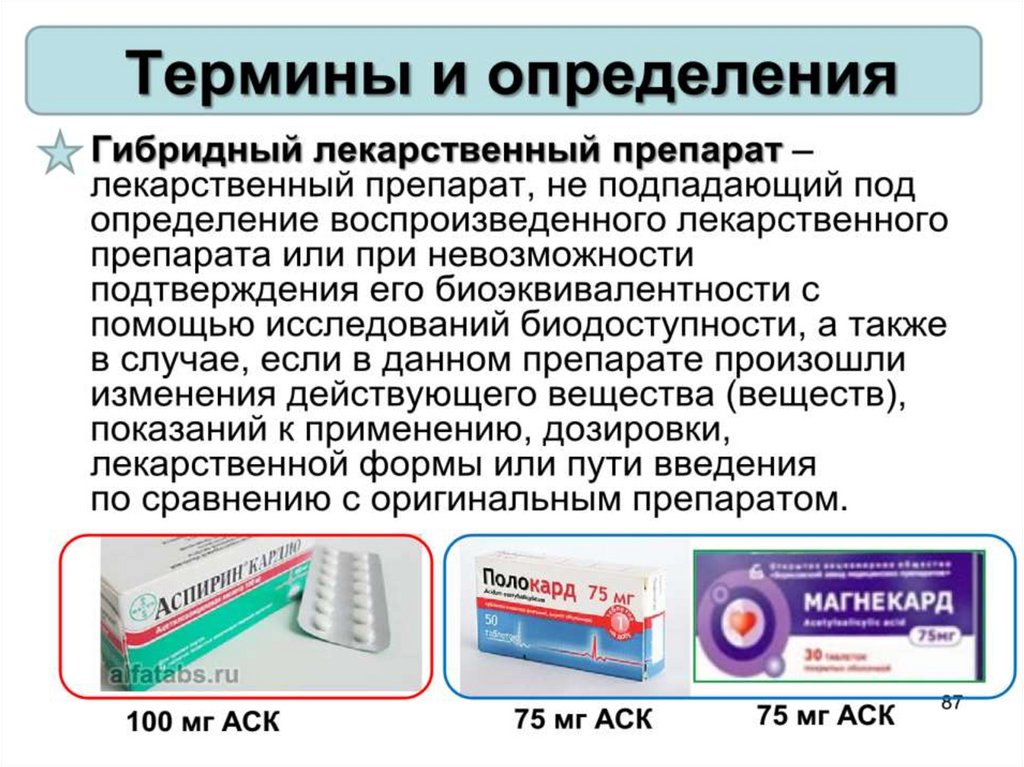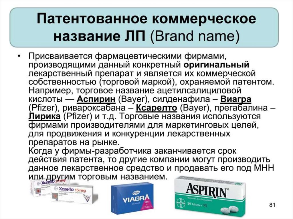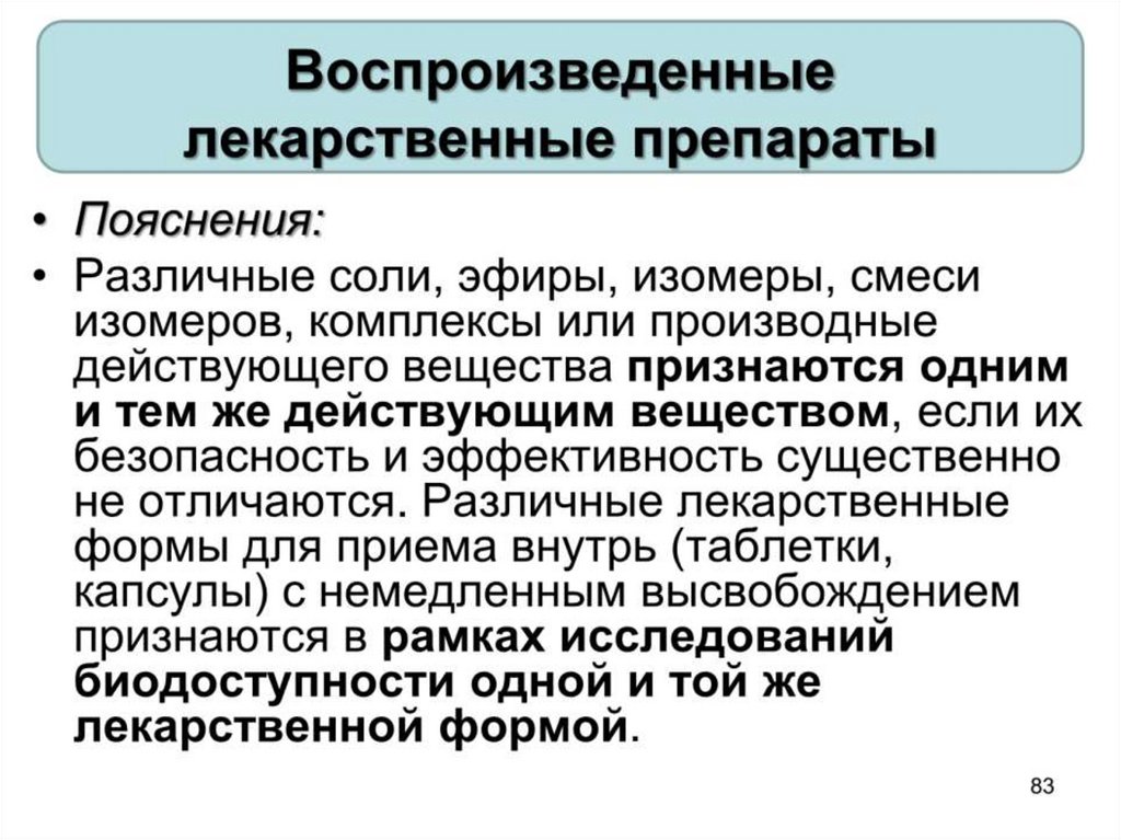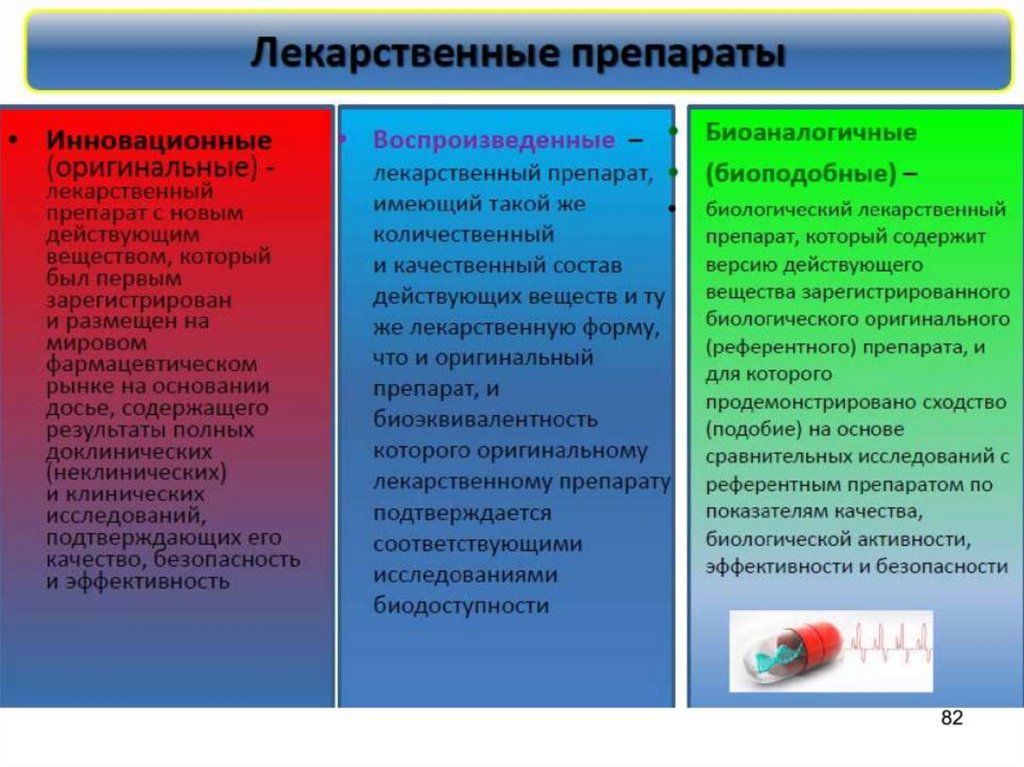 • Инновационное • Воспроизведенное –(оригинальное) лекарственное средство,