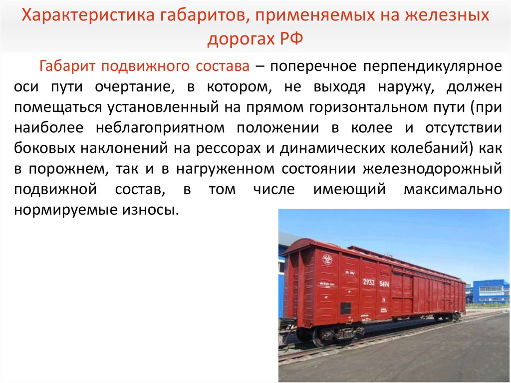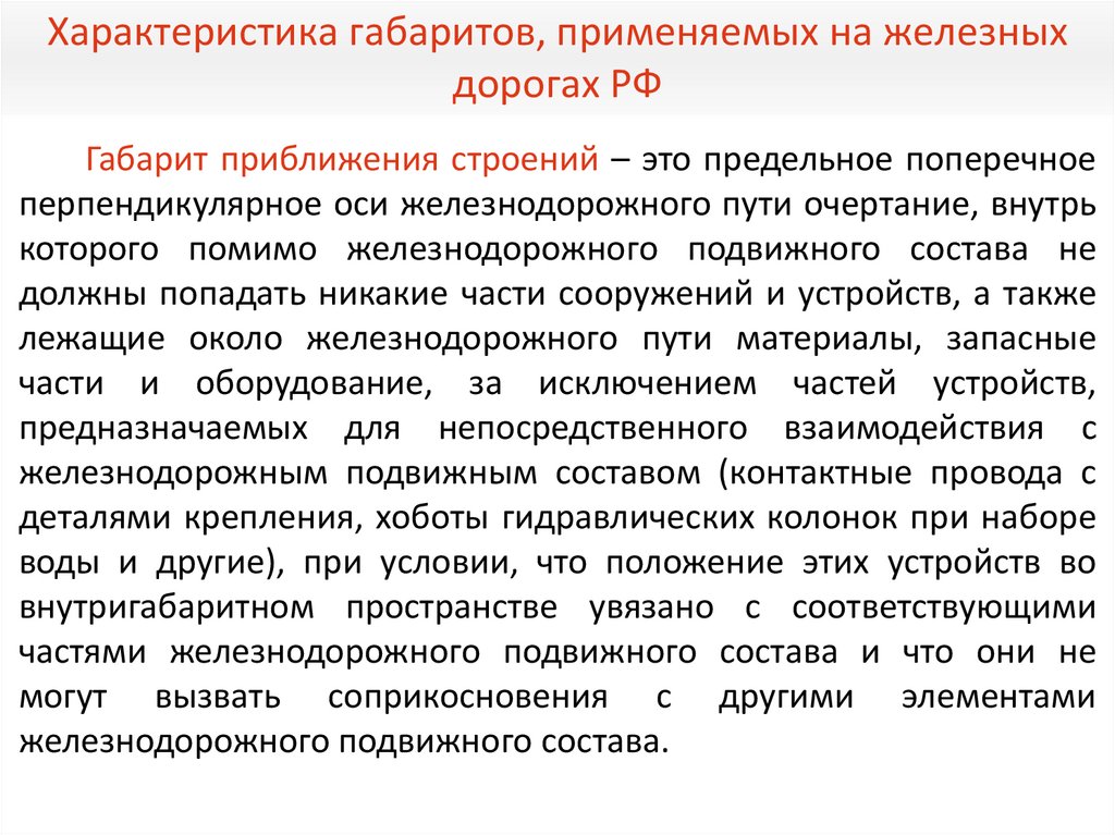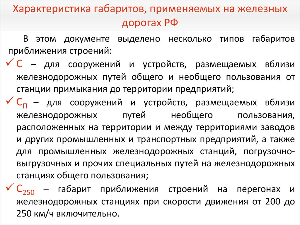 Характеристика габаритов, применяемых на железныхдорогах РФ