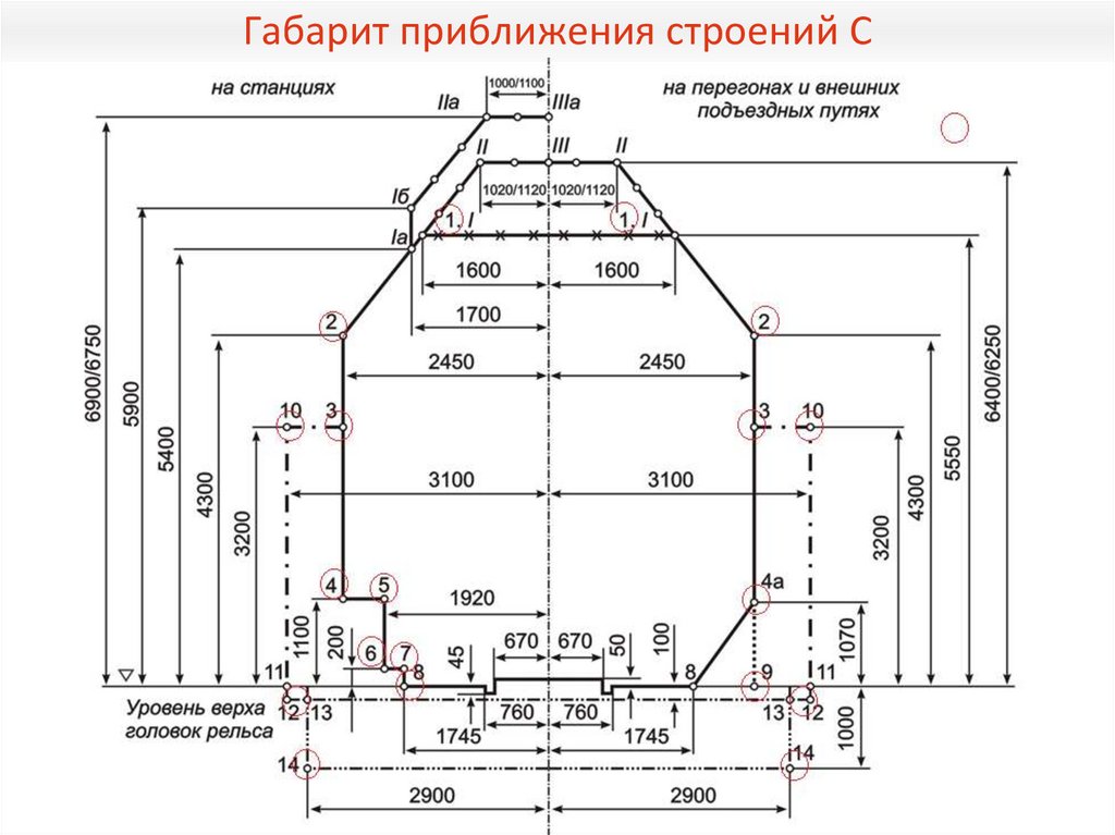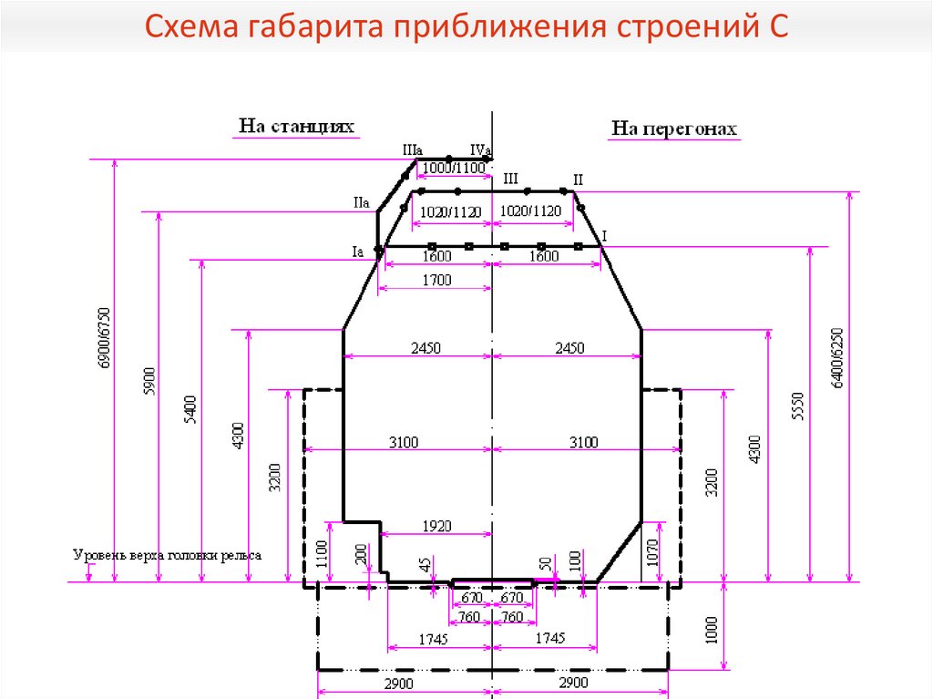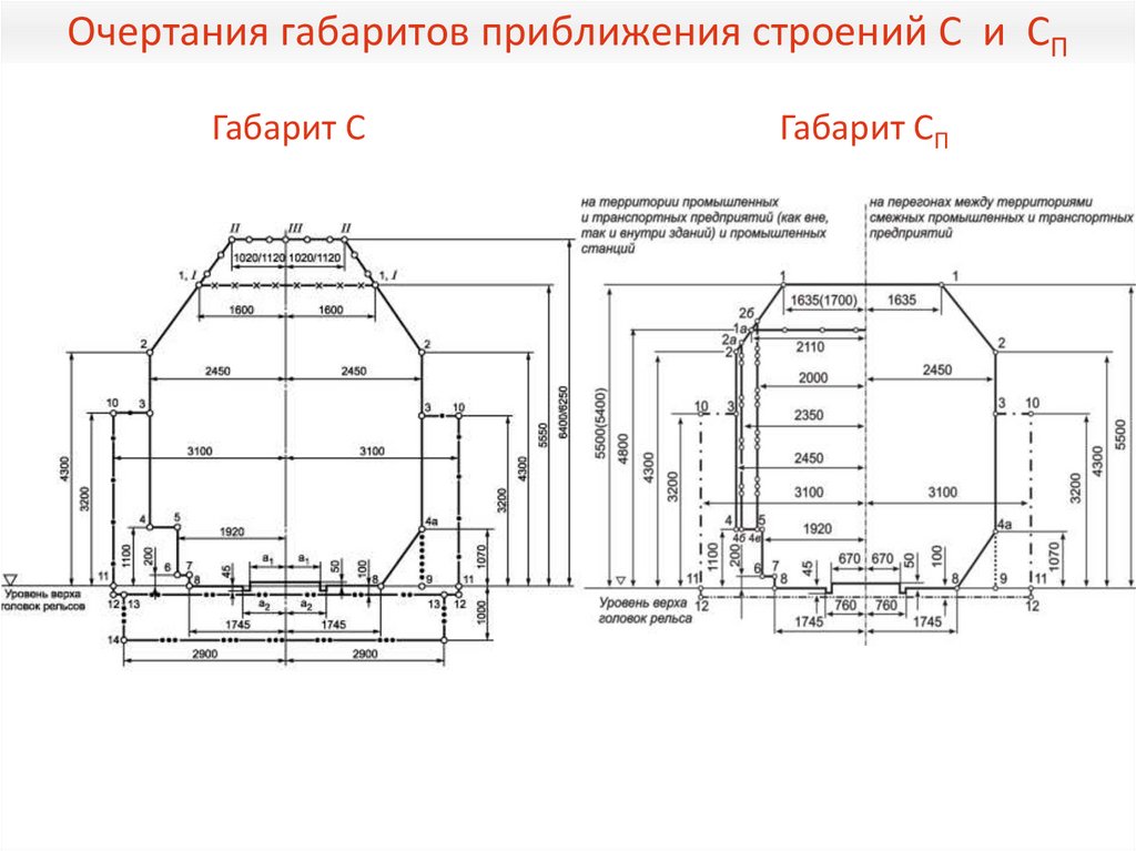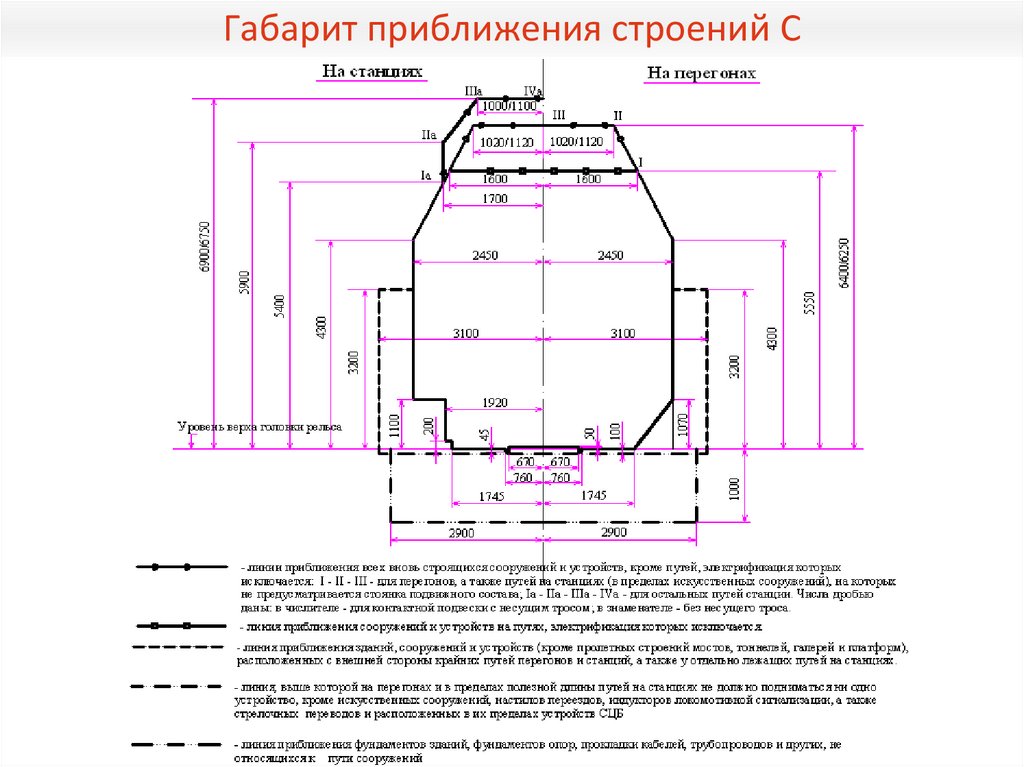 Габарит приближения строений СРасстояния между осями смежных путей на железнодорожных
