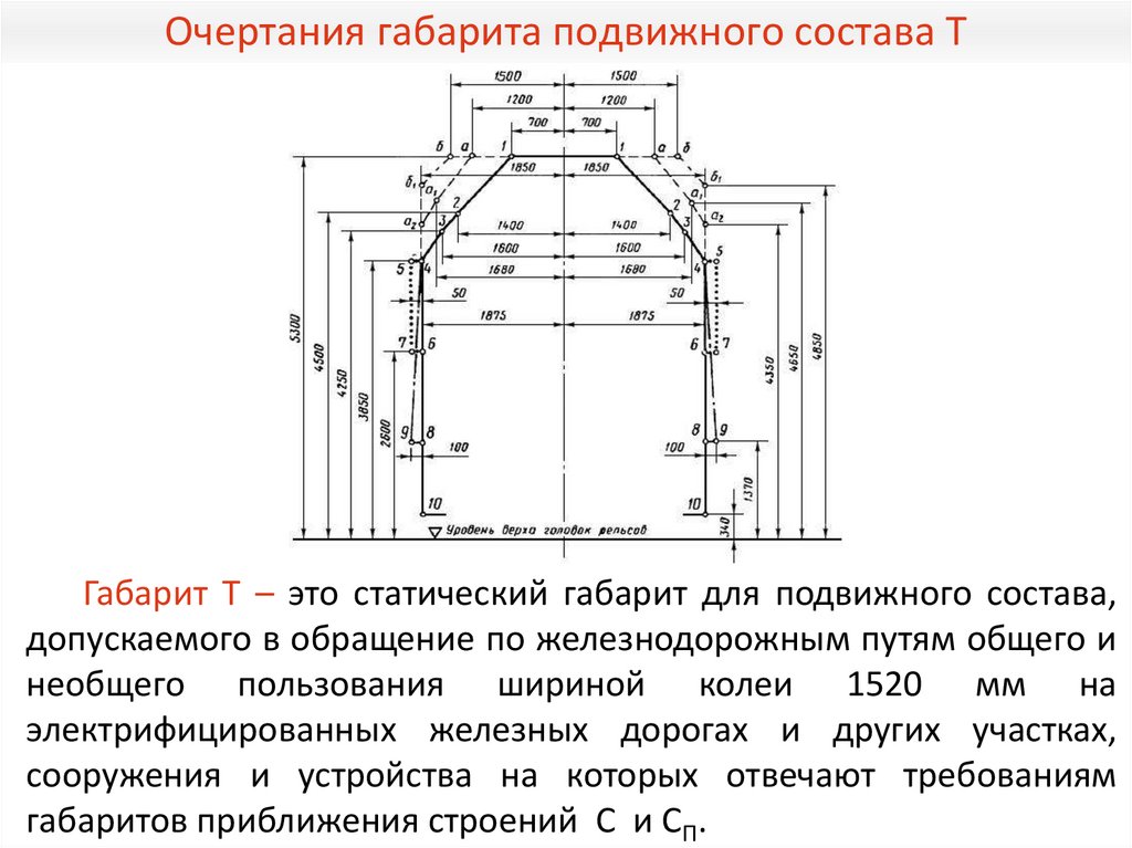Очертания габарита подвижного состава ТГабарит Т – это статический габарит для подвижного состава,