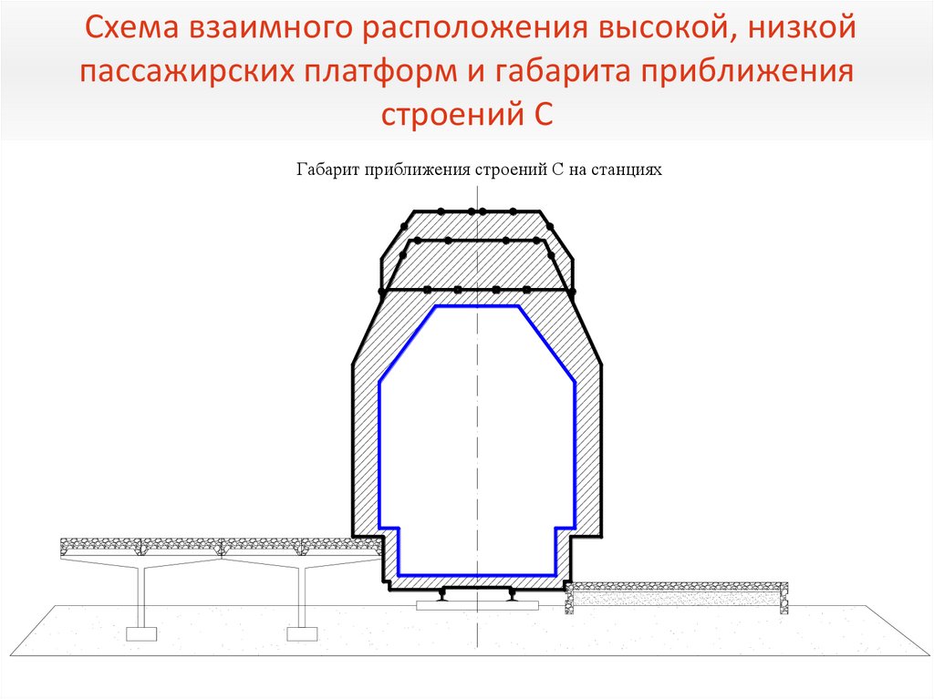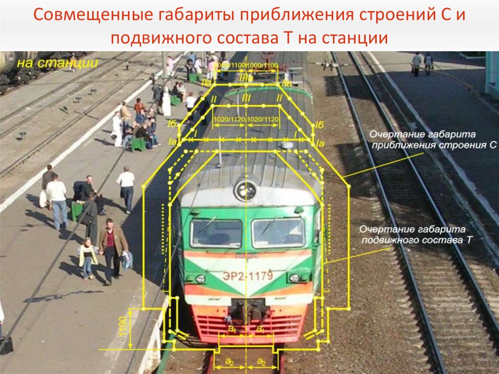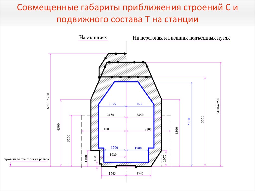 Совмещенные габариты приближения строений С иподвижного состава Т на станции