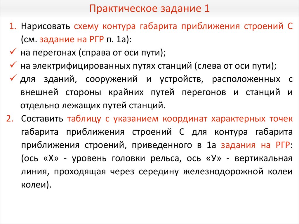 Практическое задание 11. Нарисовать схему контура габарита приближения строений С