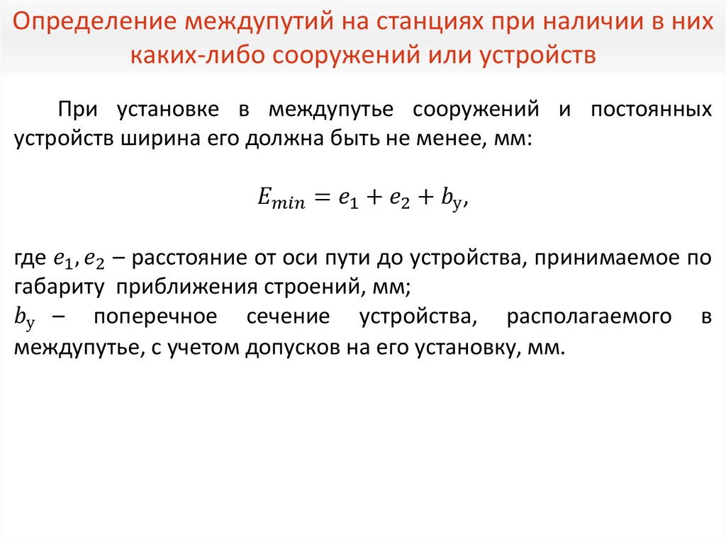 Определение междупутий на станциях при наличии в нихкаких-либо сооружений или устройств