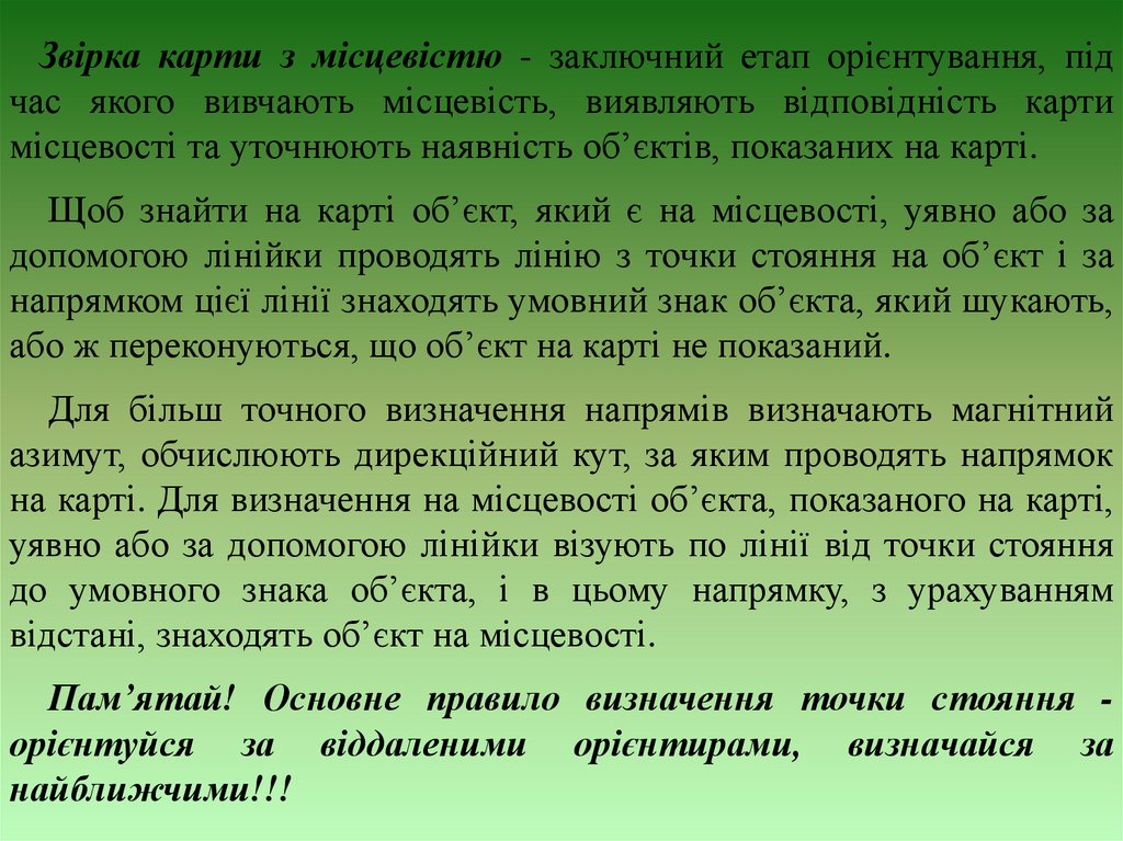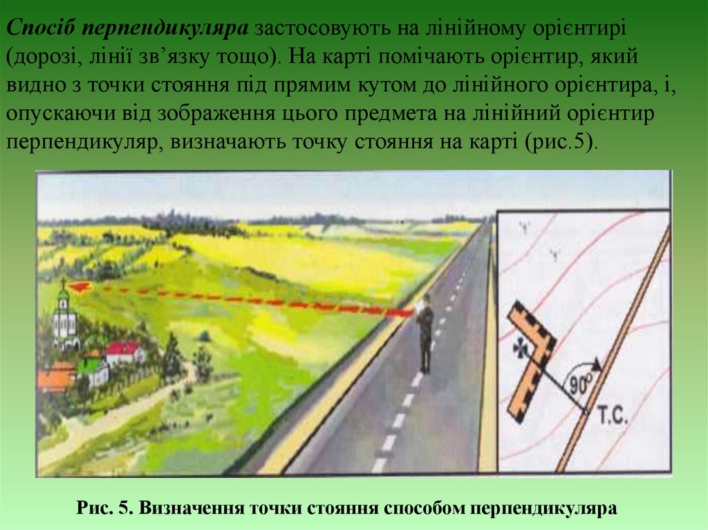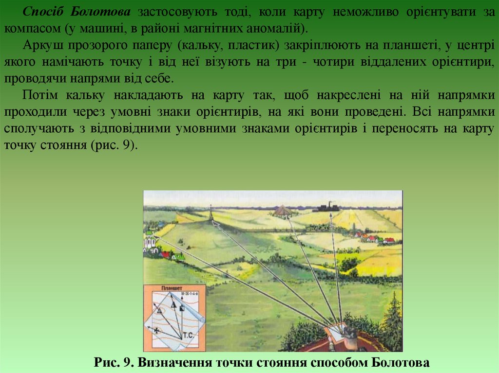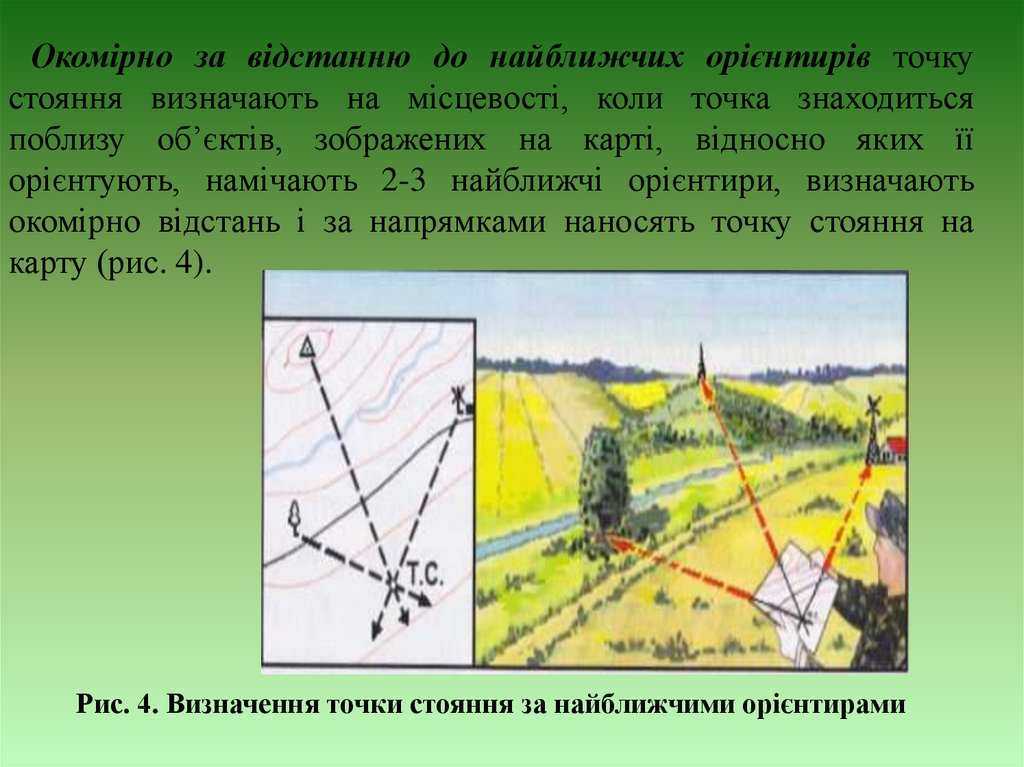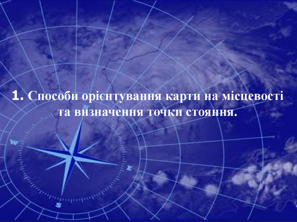 1. Способи орієнтування карти на місцевостіта визначення точки стояння.