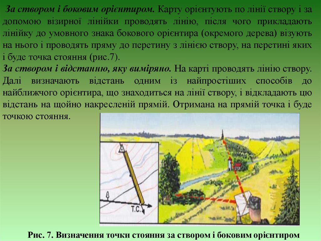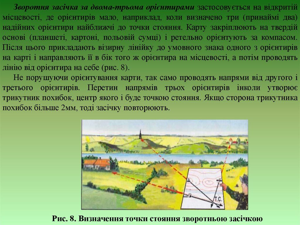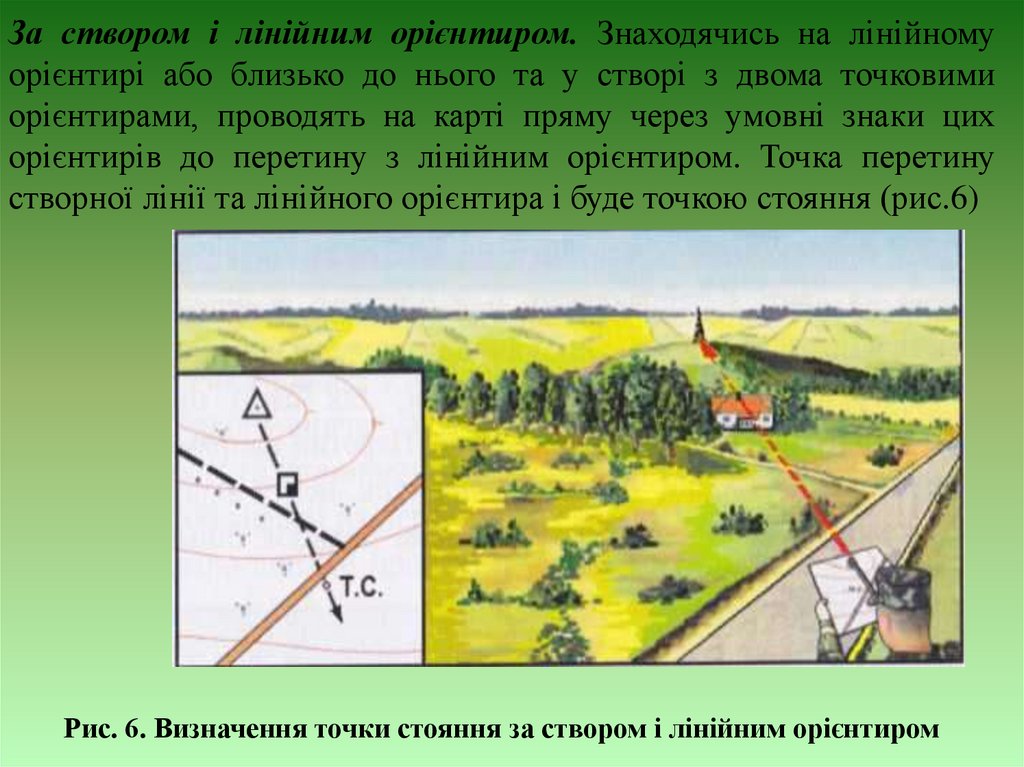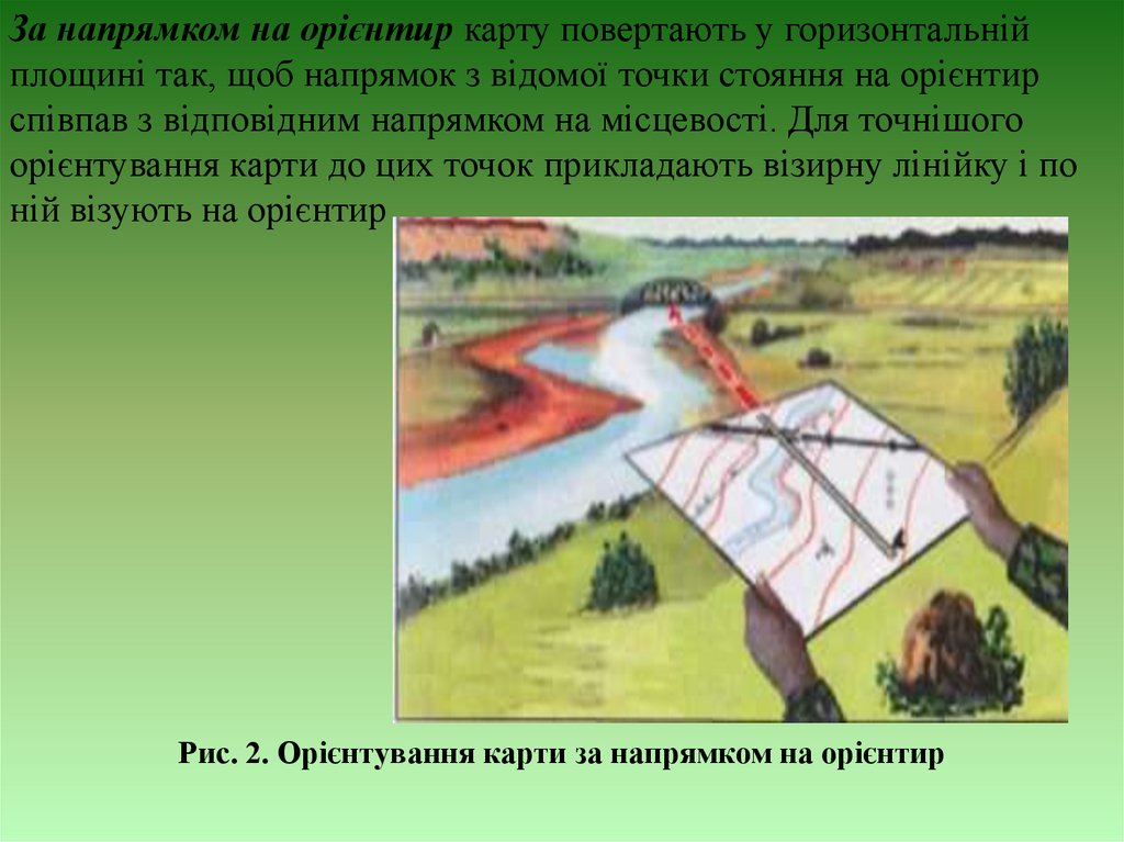 Рис. 2. Орієнтування карти за напрямком на орієнтир