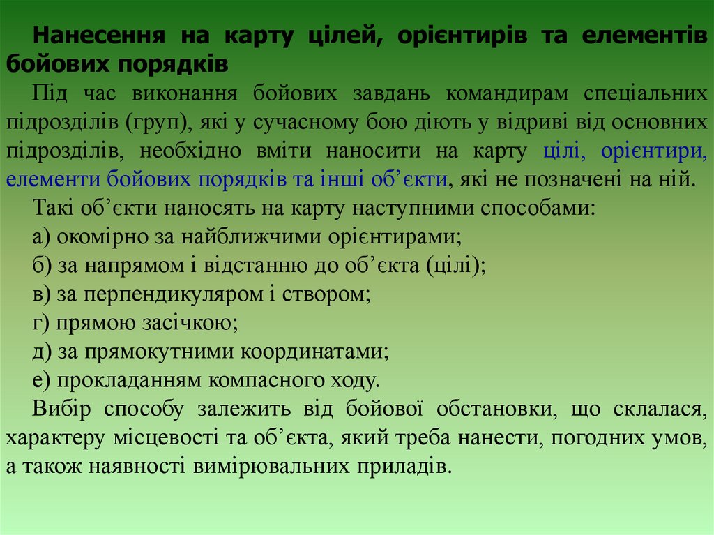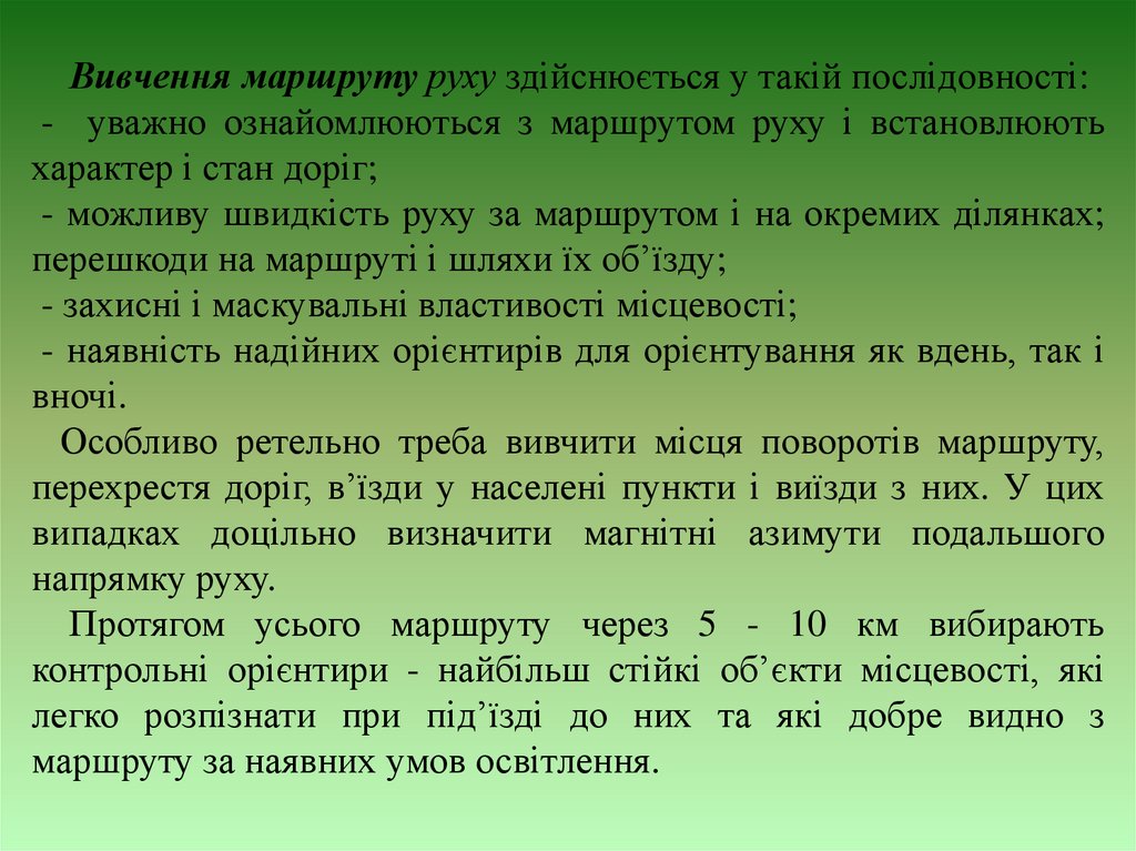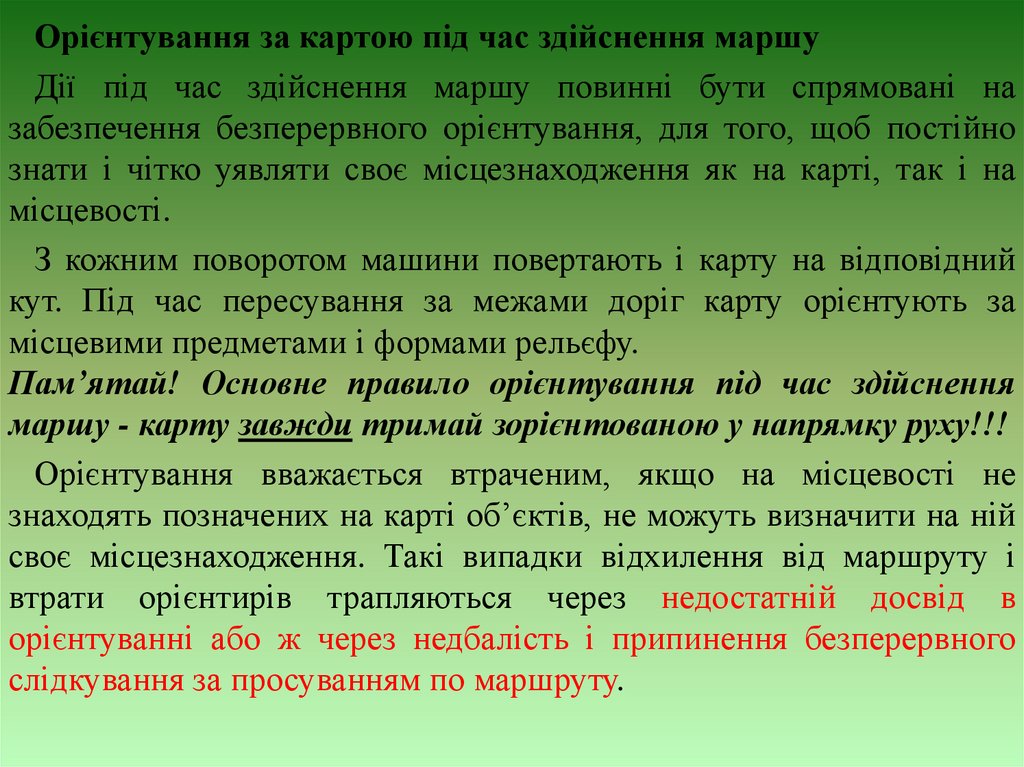 Орієнтування за картою під час здійснення маршуДії під час здійснення маршу повинні бути спрямовані на