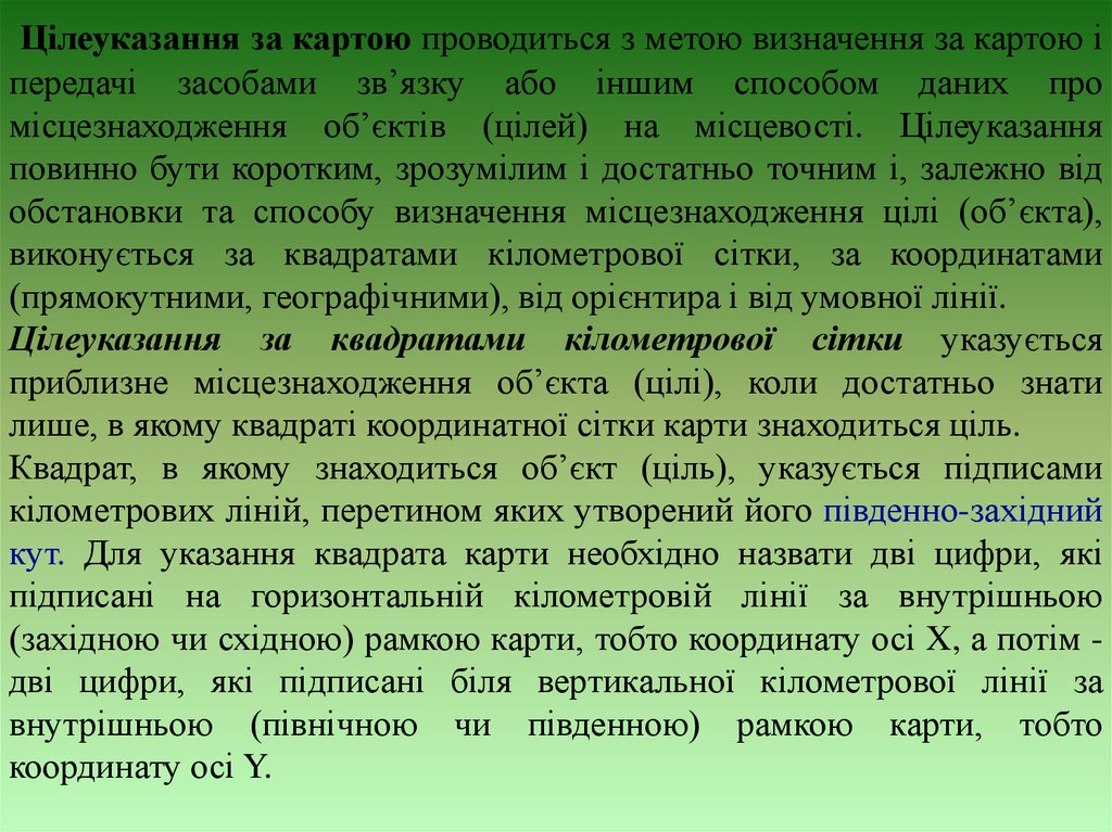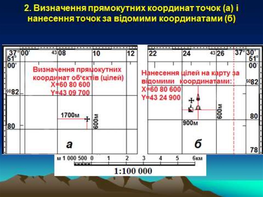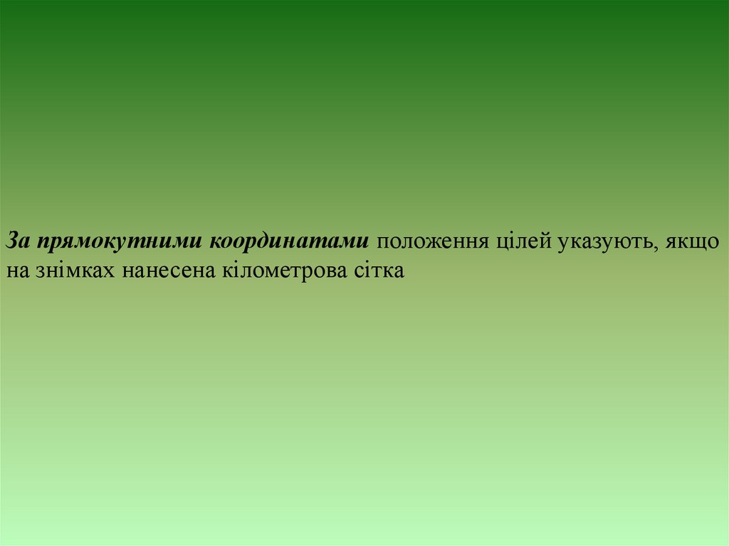 За прямокутними координатами положення цілей указують, якщона знімках нанесена кілометрова сітка