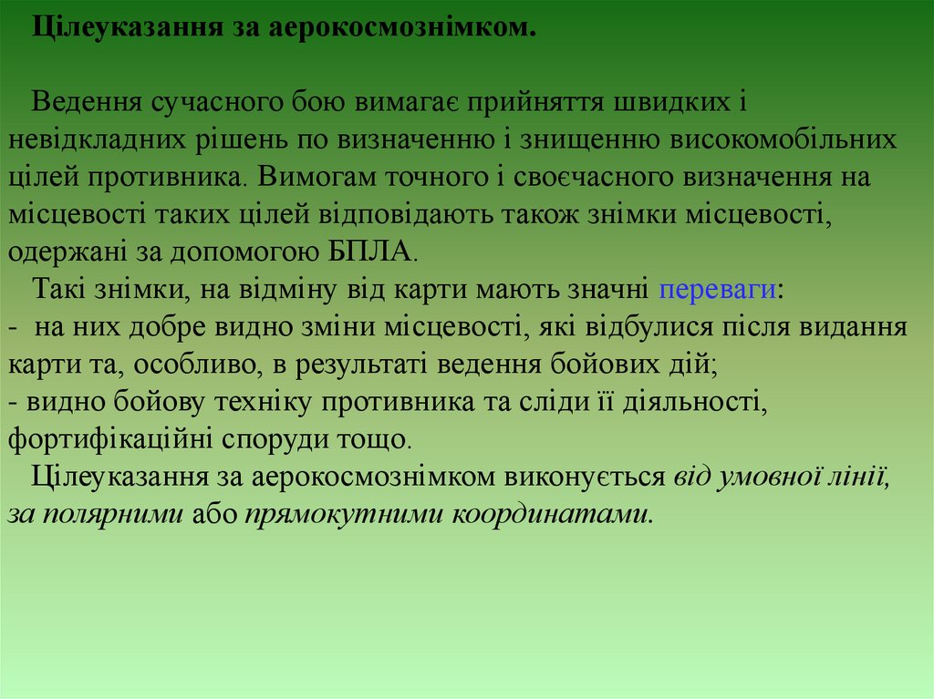 Рис.14. Цілеуказання від умовної лінії за знімком