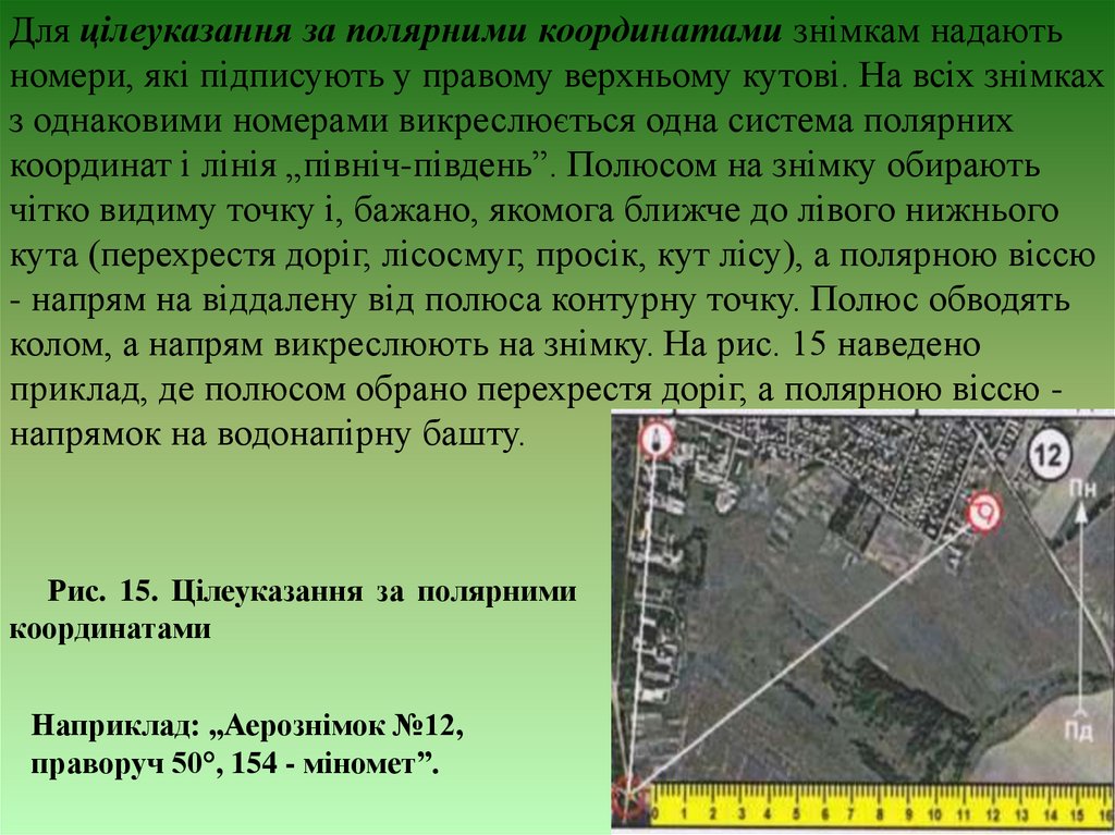 колом, а напрям викреслюють на знімку. На рис. 15 наведено