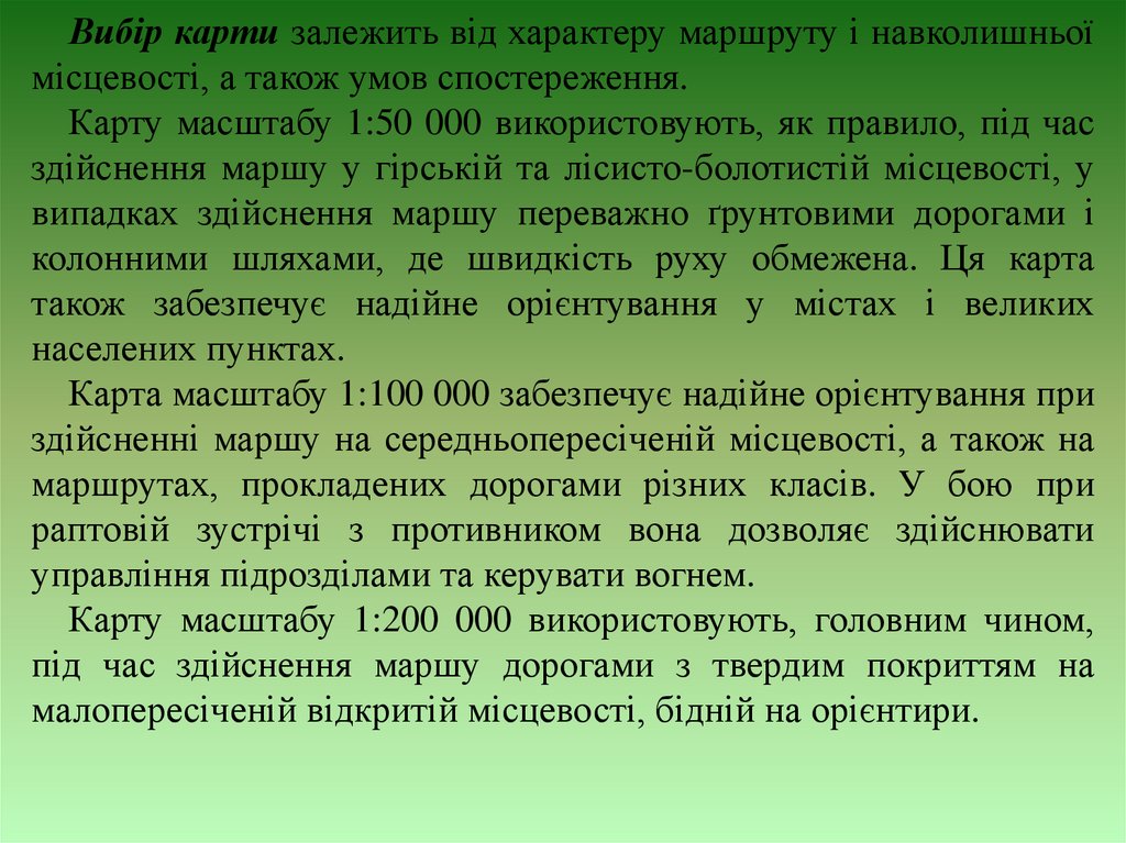 Вибір карти залежить від характеру маршруту і навколишньоїмісцевості, а також умов спостереження.