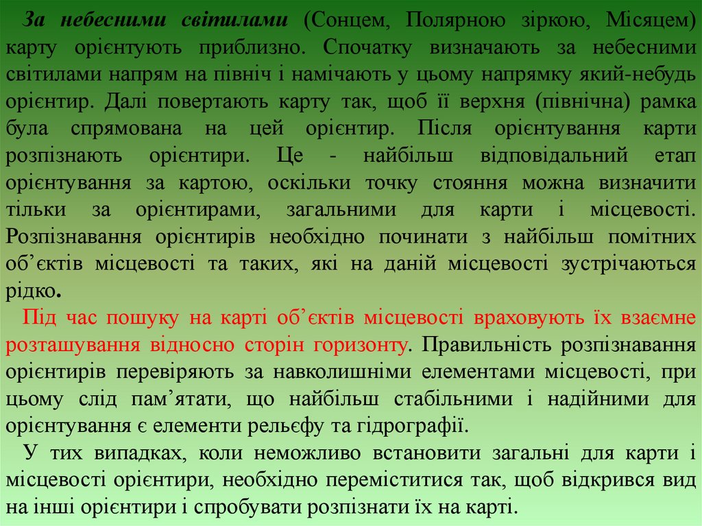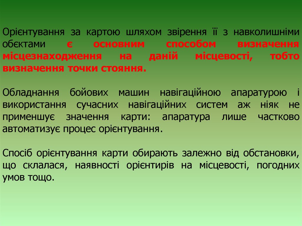 Спосіб орієнтування карти обирають залежно від обстановки,