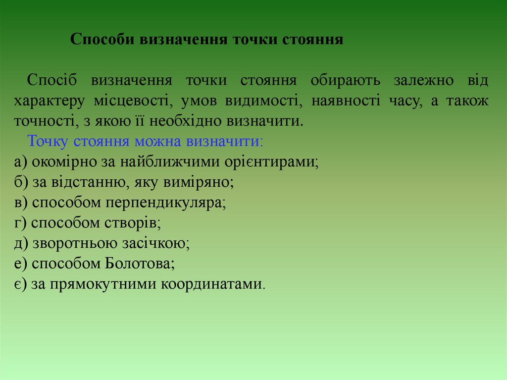 Способи визначення точки стоянняСпосіб визначення точки стояння обирають залежно від