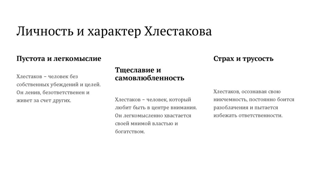 Личность и характер ХлестаковаПустота и легкомыслие