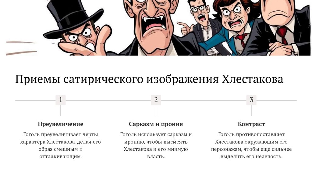 7. Какие сатирические приёмы использует Гоголь для