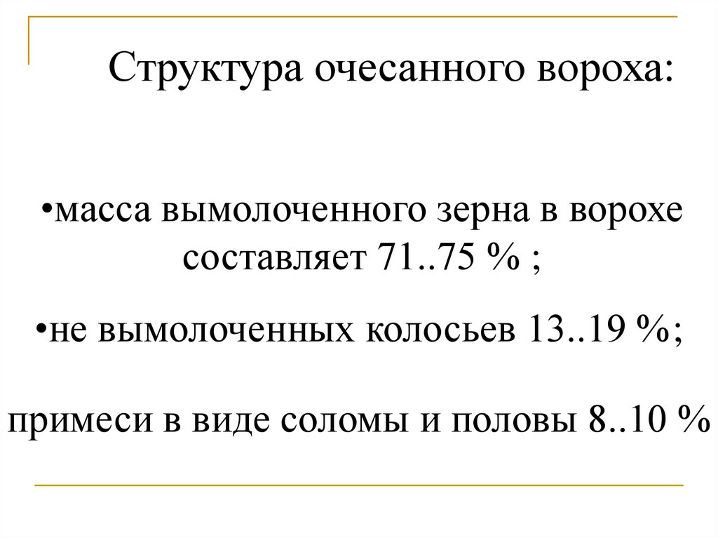 Структура очесанного вороха:•масса вымолоченного зерна в ворохе