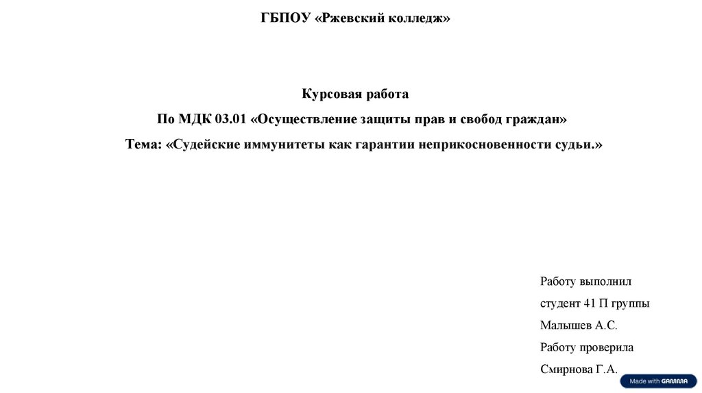 Тема: «Судейские иммунитеты как гарантии неприкосновенности судьи.»