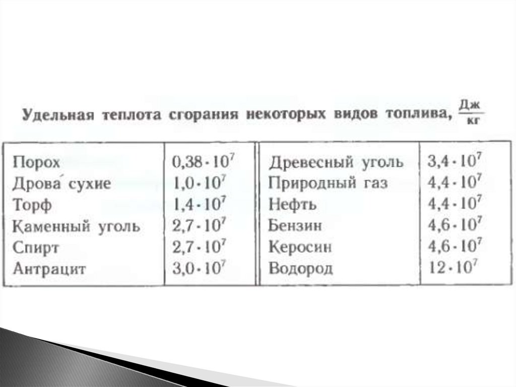 удельной теплоте сгорания топлива,