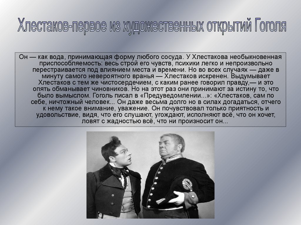 Хлестакова, тем с большим доверием к нему относятся чиновники. Сам