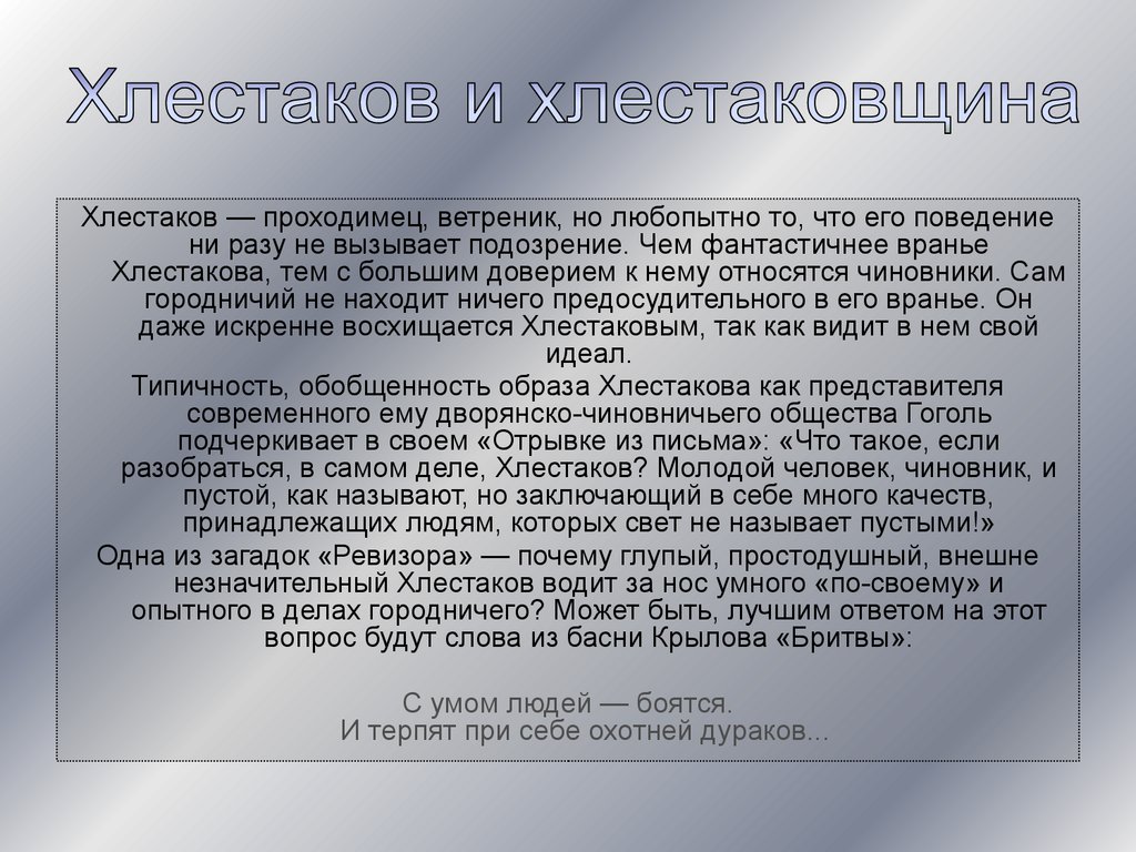 ХЛЕСТАКОВ И ХЛЕСТАКОВЩИНА(1)