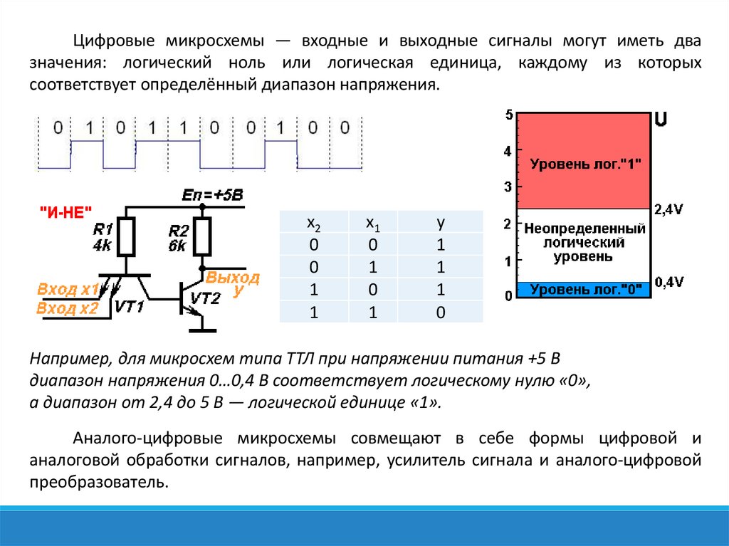 а диапазон от 2,4 до 5 В — логической единице «1».