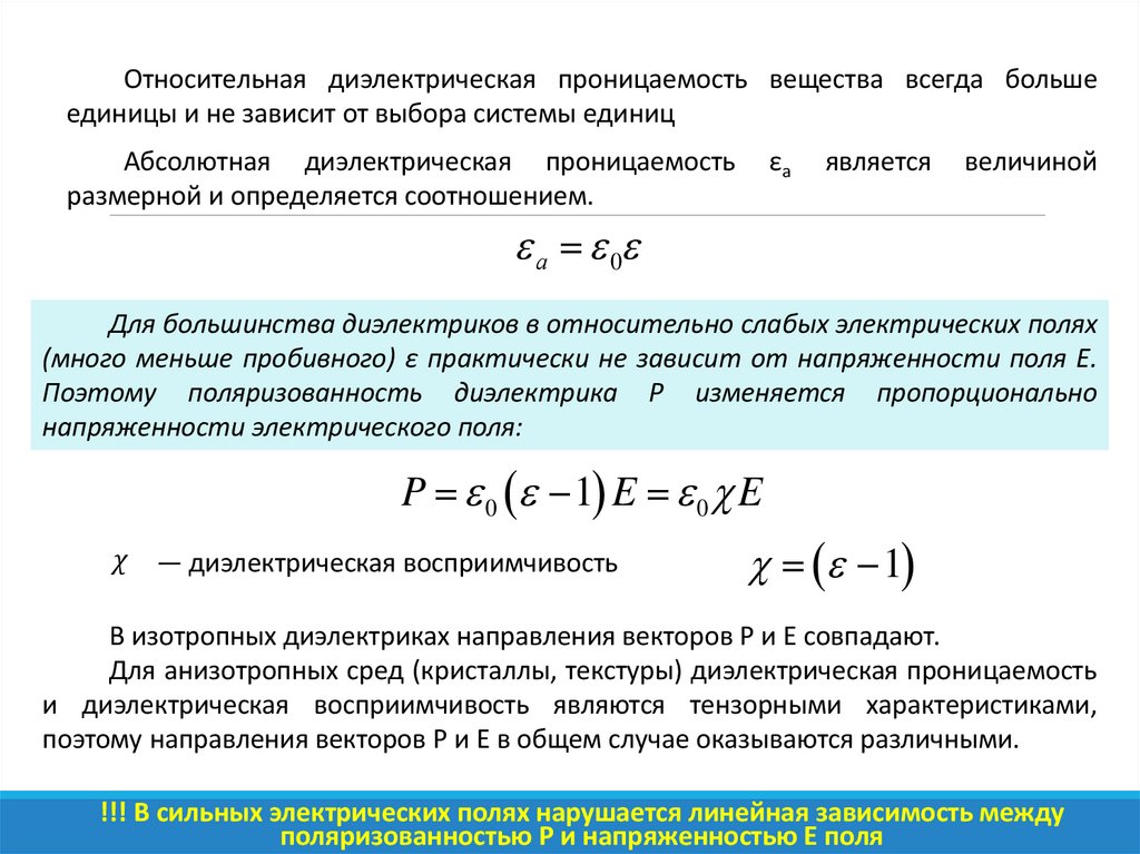 (много меньше пробивного) ε практически не зависит от напряженности поля Е.