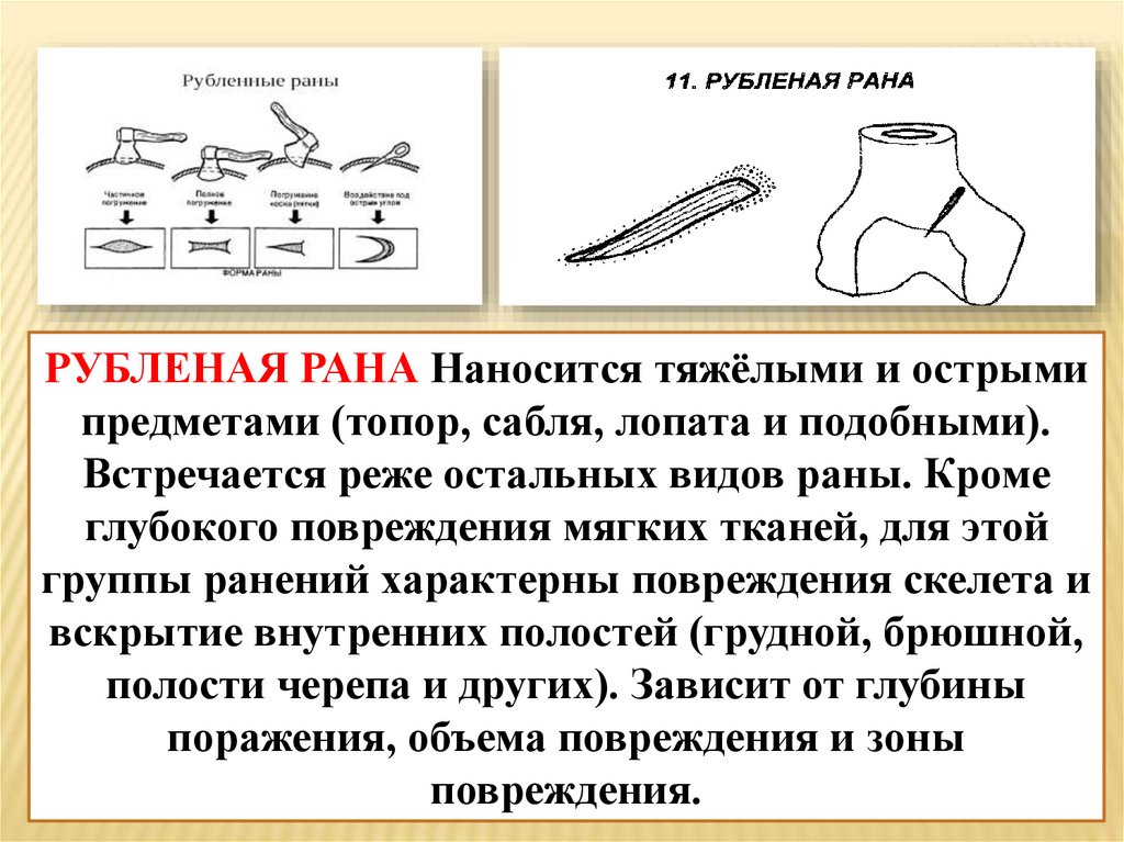 РУБЛЕНАЯ РАНА Наносится тяжёлыми и острымипредметами (топор, сабля, лопата и подобными).