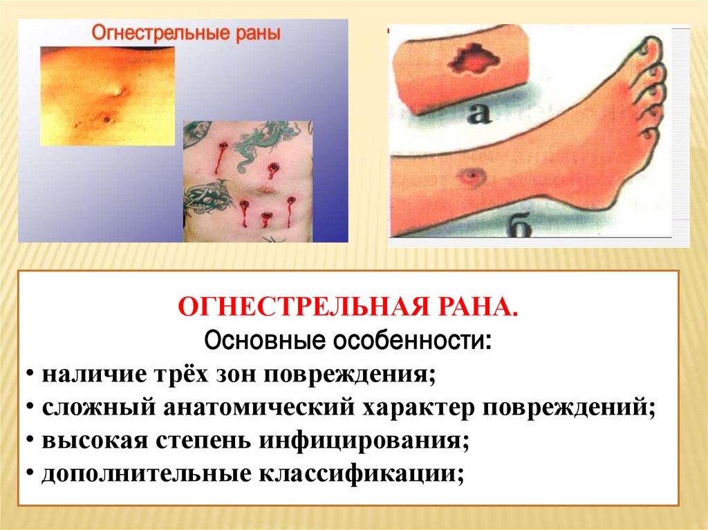 ОГНЕСТРЕЛЬНАЯ РАНА.Основные особенности:
