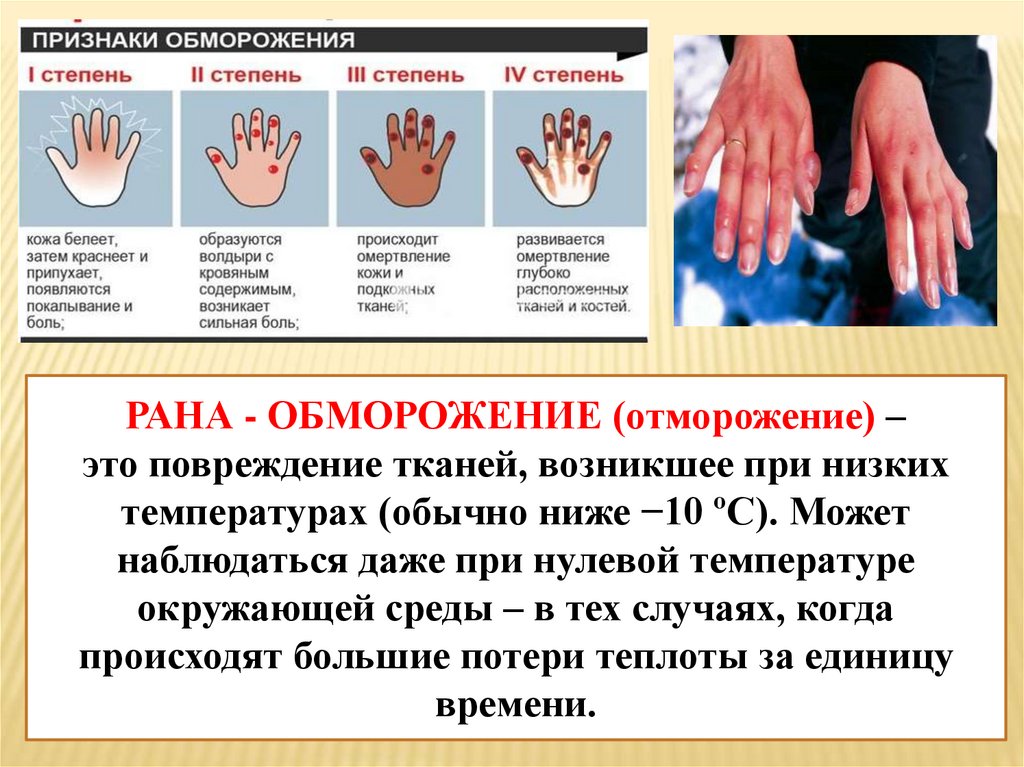 РАНА - ОБМОРОЖЕНИЕ (отморожение) –это повреждение тканей, возникшее при низких