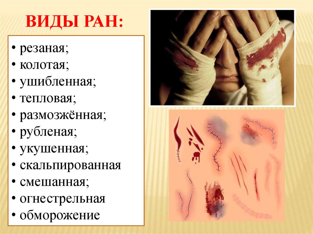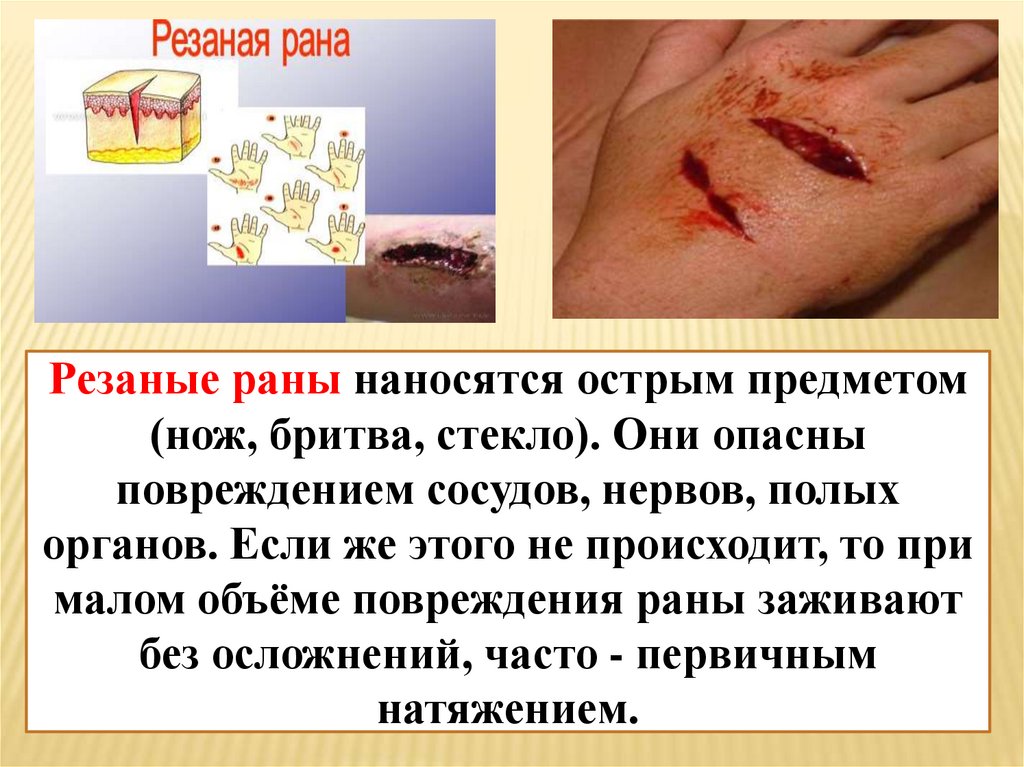 Резаные раны наносятся острым предметом(нож, бритва, стекло). Они опасны
