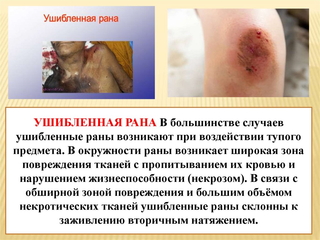 УШИБЛЕННАЯ РАНА В большинстве случаевушибленные раны возникают при воздействии тупого