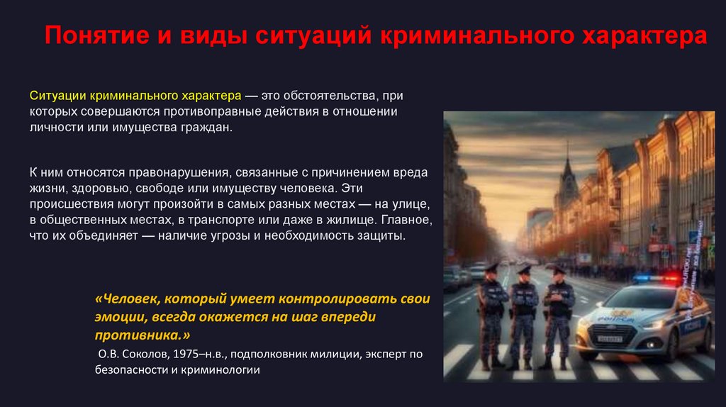 Понятие и виды ситуаций криминального характераСитуации криминального характера — это обстоятельства, при